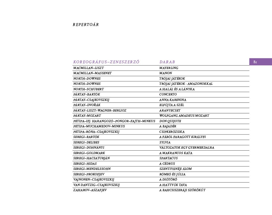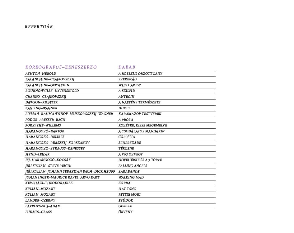 Balett repertoár kiadvány