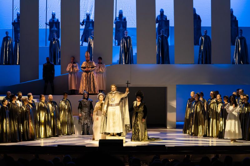 On the occasion of composer Levente Szörényi’s 75th birthday, the Hungarian State Opera presented the symphonic version of the rock opera Stephen, the King in 2020, orchestrated by Levente Gyöngyösi, conducted by Gergely Kesselyák, and directed by Miklós Szinetár. The cult work written jointly with János Bródy bids farewell to the Opera House after nearly 50 highly successful performances, including this year’s series. In the visually striking production, which makes its impact without any electronic amplification, László Boldizsár and Barna Bartos make their debuts as Stephen this year, while Andrea Ulbrich debuts in the role of Sarolt. Other principal roles are performed by Csaba Szegedi (Koppány), Kinga Kriszta (Gizella), Andrea Meláth (Sarolt), János Szemenyei (Laborc), István Kovácsházi (Asztrik), as well as Melinda Heiter and opera studio member Vivienne Ortan (Réka). The production, with the participation of the Hungarian State Opera Orchestra, Chorus, and a 14-member dance ensemble, is once again conducted by Gergely Kesselyák at performances on 31 December and on 3, 4, 9 & 10 January 2026.