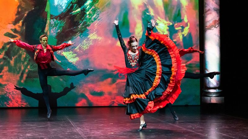 The Hungarian National Ballet returned to the series with romantic and classical ballets. Giselle by Adolphe Adam is a repertoire piece of every company. In the programme, two excerpts from the choreography by Marius Petipa and Jules Perrot (featuring costumes by Nelly Vágó) could be seen: Grand Pas de Deux from Act 2 was performed by Aliya Tanykpayeva and Dmitry Timofeev, Peasant Pas de Deux from Act 1 was performed by Miyu Takamori and Ryosuke Morimoto. Viewers could enjoy another ballet by Petipa/Adam in the show: an Odalisque variation from Le corsaire was danced by Katica Ruip, student of the Hungarian National Ballet Institute. Internationally acclaimed ballet master and choreographer Michael Messerer revived Laurencia for the company to music by Alexander Krein and costumes by Nóra Rományi in March 2020. An elegant excerpt from Pas de Six was performed by Gaetano Cottonaro and Valerio Palumbo, whereas the fiery Flamenco was danced by Lea Földi, Leo Lecarpentier and Dumitru Taran.