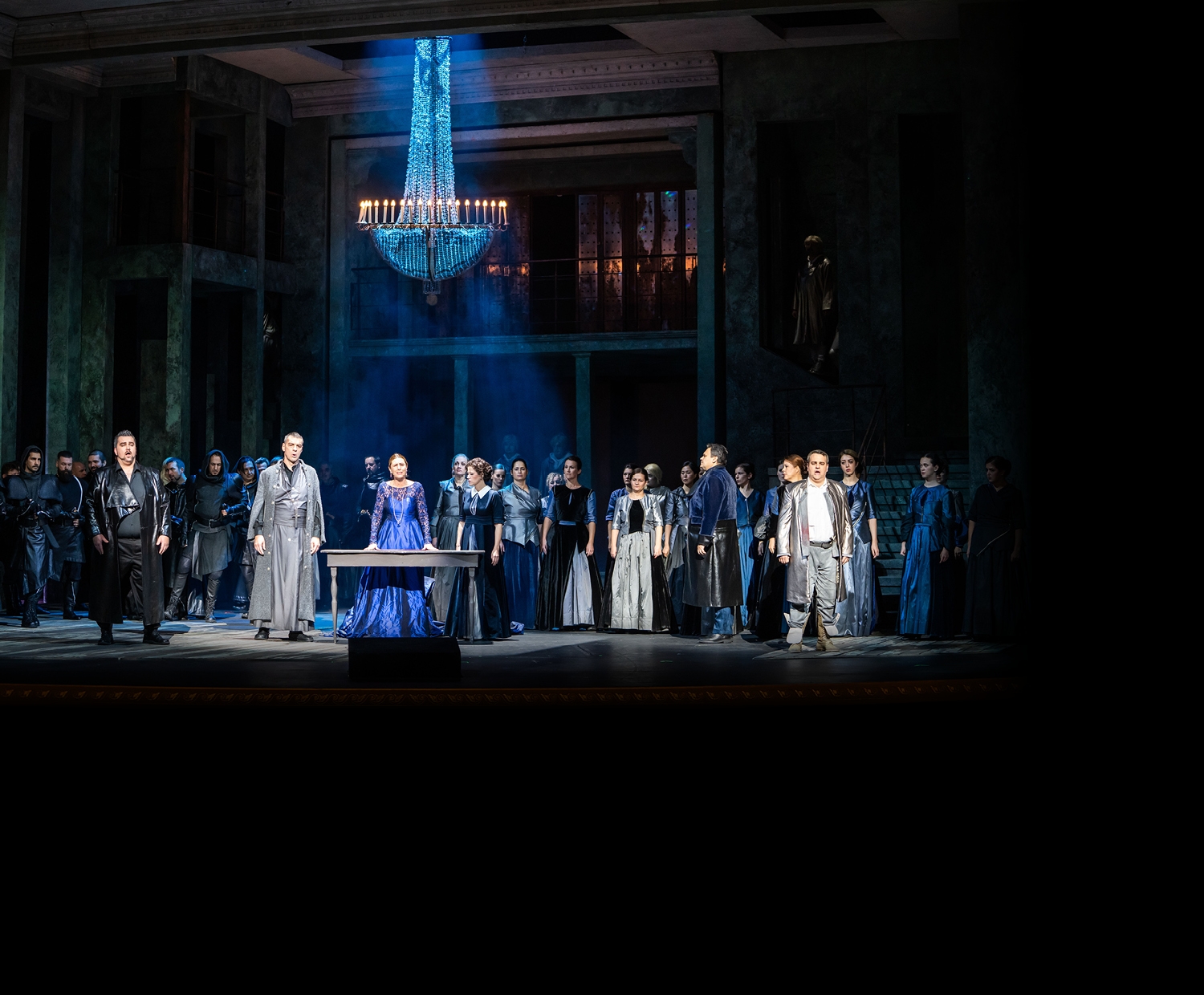 Leginkább az a kérdés, hogy észrevesszük-e, ha már megőrültünk? Hogyan működik az a prés, amiben vagyunk; az egymásnak ellentmondó elvek és prioritási rendszerek hogyan egyeztethetők össze az ember lelkében. Ebben a történetben egy politikával átszőtt egzisztenciális kérdés kerül szembe egy határhelyzettel, ami a szerelem. Általában ez az érdekes a színpadi művekben: mi történik az ösztön irányította érzésekkel? Mit okoz az elfojtásuk vagy éppen azok megélése? Ma talán ritkább, hogy egzisztenciális okok szólnak bele a párválasztásba, de a társadalmi elvárásoknak meg kell felelni. Legalábbis nagy a nyomás. Lucia esetében jól meghatározható, honnan jön a kényszerítő erő. Három irányból is beszorítva érzi magát. Ott a vallás – a katolikus-protestáns ellentét –, a testvéri szeretet és családi kötődés, valamint a szerelem. Raimondo, Enrico és Edgardo: a három férfi, aki Lucia életét irányítja. Ez a hármas koordináta rendszer, amelyben mozognia kell. Ennek kibontását segíti, hogy a hagyományosan húzott Raimondo-Lucia kettős visszakerült ebbe az előadásba. Választ egy irányt, és látszólag épp az a dimenzió tűnik el, amerre elindult.